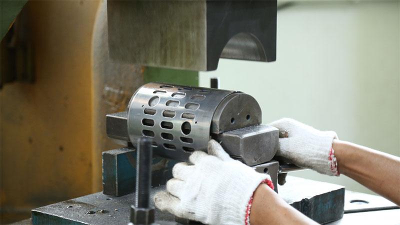 Contamos con más de 40 sets de punzonadoras de alta velocidad y punzonadoras neumáticas con una capacidad de punzonado que va desde 25 hasta 250 toneladas. Estas máquinas realizan el proceso de estampado para aquellos componentes de gran tamaño, el cual incluye la embutición, el punzonado, y el moldeado, entre otros. Realizamos la embutición profunda y el afinamiento para garantizar el sellado y la integridad del producto. El uso de procesos maduros nos da la capacidad para producir diversas piezas de embutición profunda.